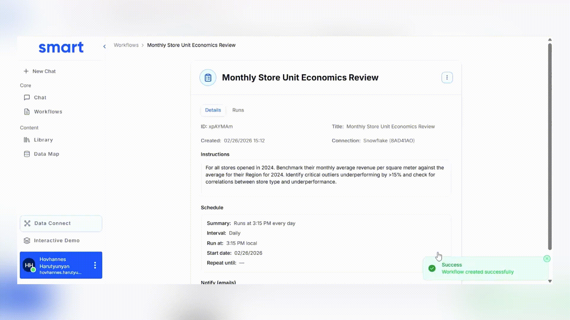 Smart goes beyond insights - allowing users to create custom reusable workflows, for recurring tasks. Automate multi-step processes and save dozens of hours of manual work every cycle.